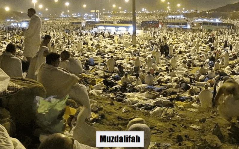 Après le coucher du soleil, les pèlerins quittent l'Arafat pour Muzdalifah où ils offrent deux prières (Maghrib et Isha) combinées. Ils passent toute la nuit à ciel ouvert et ramassent les cailloux pour le rituel de lapidation (rami) dans la Muzdalifah. Ils quittent cette ville le matin du 10e jour du Hajj.